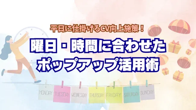 Shopifyストア, Wixストア, かご落ち対策, カラーミーショップ, コンバージョン率アップ, 離脱防止 平日売上を底上げするポップアップ施策 曜日・時間帯ターゲティング完全ガイド 「平日はアクセス数も売上も伸びない・・・」そんなお悩みを抱えていませんか? 週末に比べて平日はユーザ […]